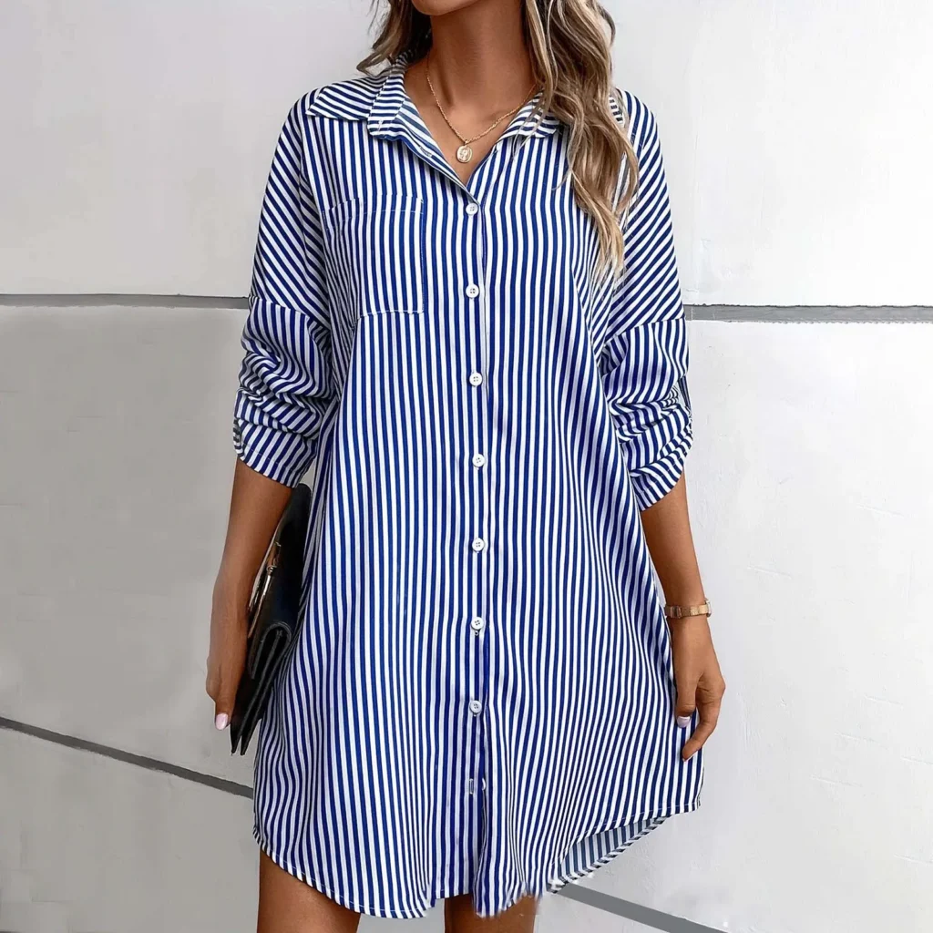 Vertical striped linen shirts are widely regarded as the most flattering option. The upward movement of the lines works in harmony with linen’s drape, creating a lengthening effect.